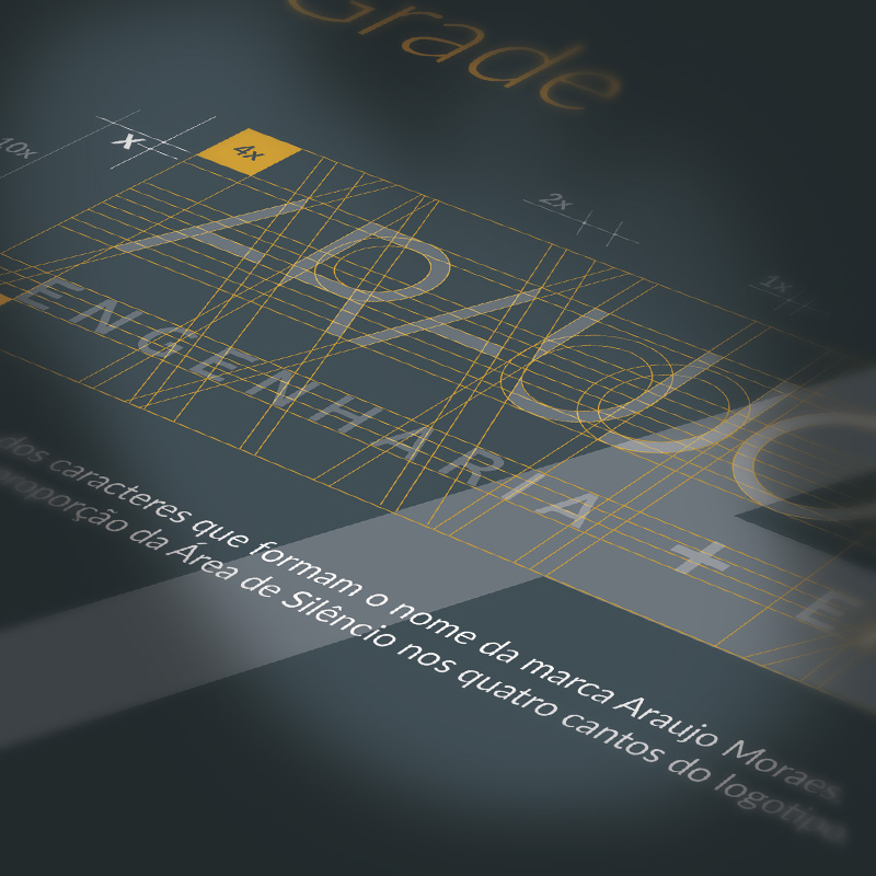 O logo Araujo Moraes | Engenharia + Empreendimentos tem seus caracteres principais desenhados exclusivamente para a marca.