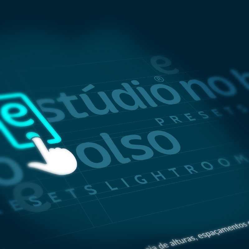 Estúdio no Bolso: A mão que “clica” no botão de foto do smartphone é um “b”. Daí a necessidade da tipografia ser utilizada em caixa baixa (minúsculas). O elemento que dá o tom das proporções é a letra “e”.