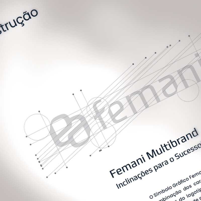 Femani: O grid do logo é baseado nas inclinações da tipografia que foi adaptada para representar visualmente a marca. O símbolo gráfico é uma fusão das letras “e” + “a”, que tem exatamente o mesmo desenho aplicado com diferença de 180 graus.