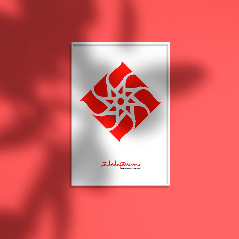 Aí a repetição do “F” dá o tom de estampas indianas e nasce o símbolo gráfico que representa o cerco de cuidado além de outros significados que estão secretamente codificados no logo da profissional.
