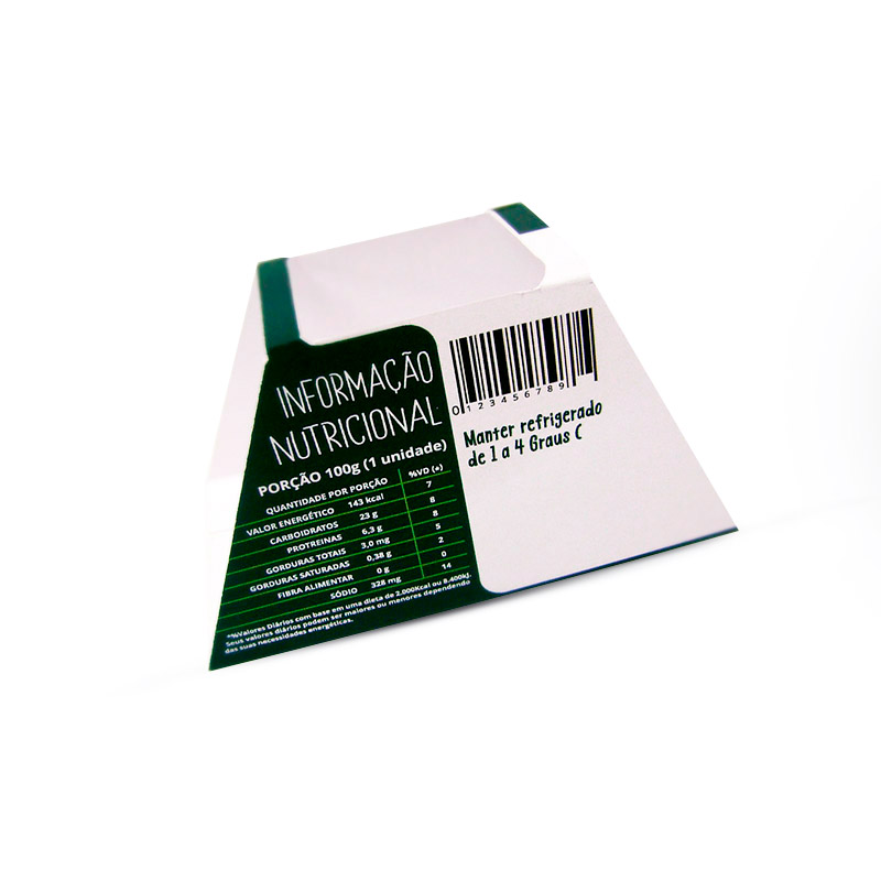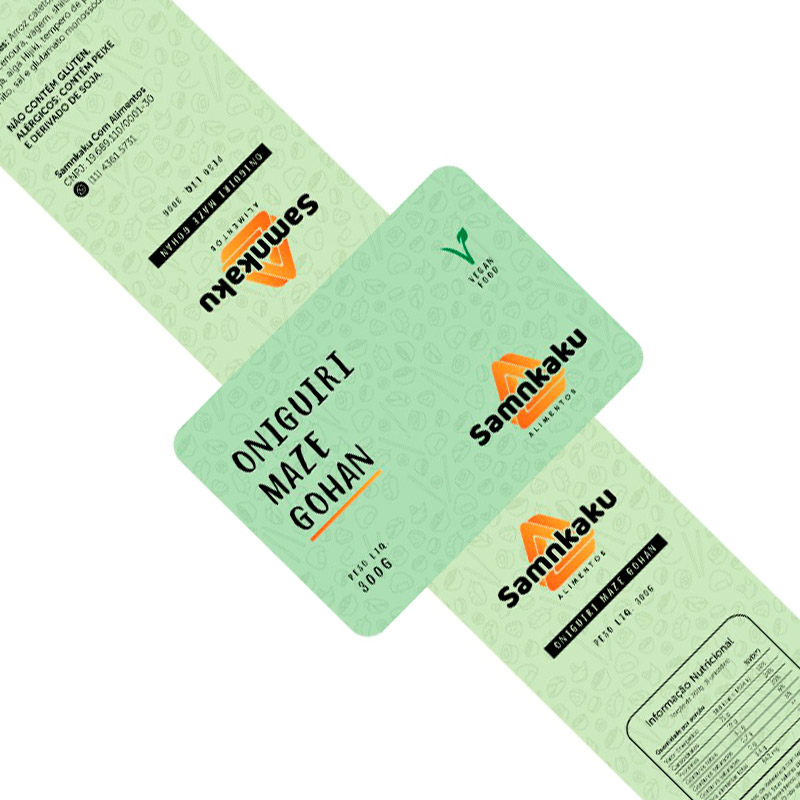 Originalmente o Salmão com Cream Chesse Yoshi (da Samnkaku) se comunicava com dois adesivos, um na frente e outro no verso. A Ohpera propôs uma estrutura em papel com proteção.